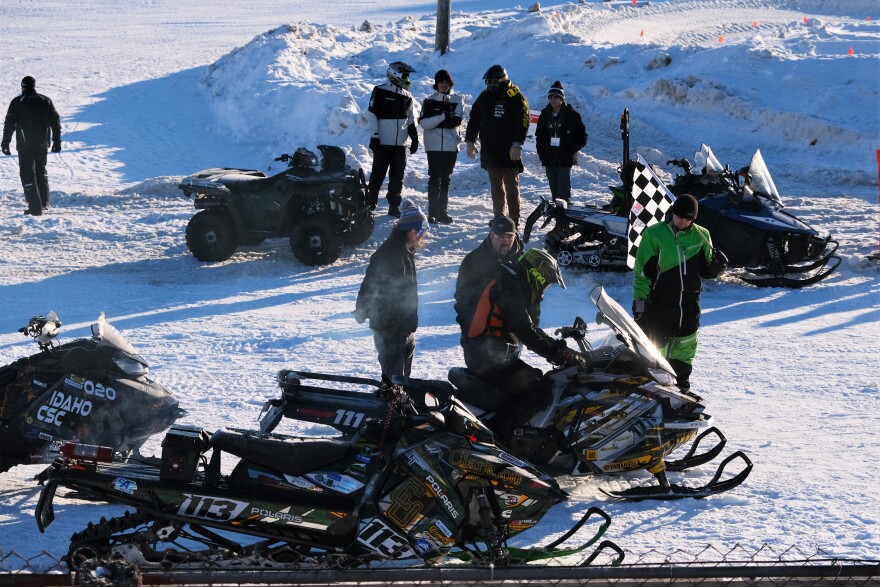 The derby track is hosting the inaugural Advance Snowmobile event.