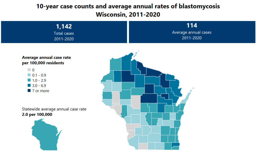 The Great Lakes region in general tends to see more cases than other parts of the U.S. Blastomyces, the fungus that cause blasto.