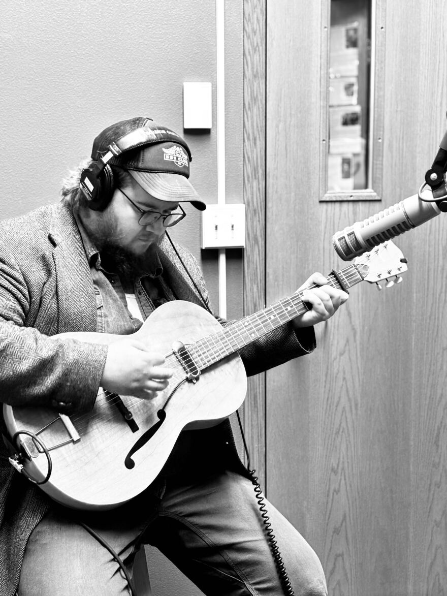 "Simon Cropp is a flatpick guitarist, multi-instrumentalist, and country and bluegrass songwriter. His performance is equal parts dive bar bravado and fireside introspection. Simon’s songwriting style is plainspoken storytelling, channeling classic country themes of love, heartbreak, and the landscapes he travels through."